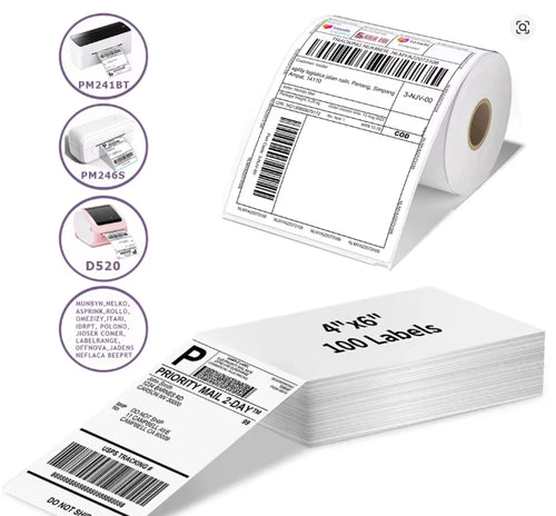 A6 taille 4x6 ''4x4'' étiquettes d'expédition papier pliable 241BT 246S D520 DYMO 4XL zèbre Munbyn Nelko pour code à barres LOGO